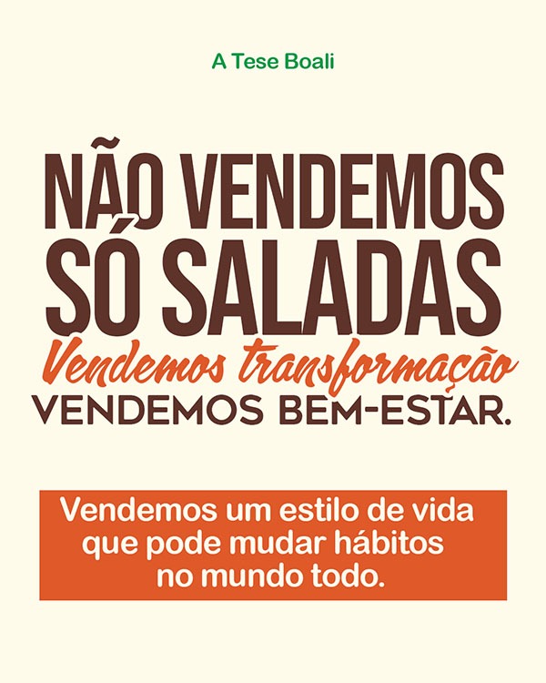 Marcas como Sweetgreen e CAVA constroem valor por meio de consistência e branding forte. A Boali carrega um diferencial adicional: nascemos com um propósito profundo — transformar a vida das pessoas por meio da alimentação